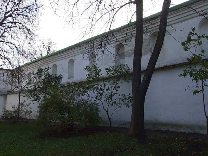2013 р. Вигляд з північного сходуРозмір зображення: 800:600 піксел Ділянка західного муру на північ від Троїцької церкви, вигляд з боку двора больничного монастиря. Фото М. І. Жарких, 20 жовтня 2013 р. |