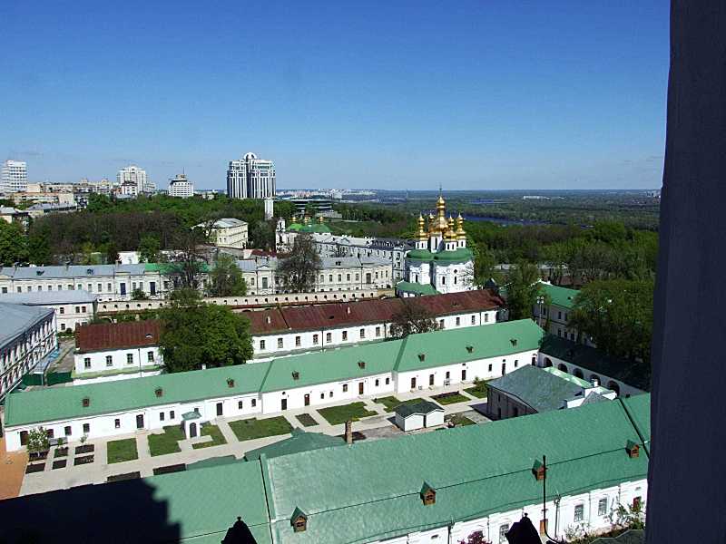 Права частинаРозмір зображення: 800:600 піксел На передньому плані – келії (корпус 4), далі – корпуси 21, 20, церква Всіх святих. Фото М. І. Жарких, 4 травня 2015 р. |