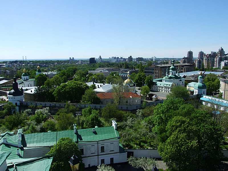 Центральна частинаРозмір зображення: 800:600 піксел Південний двір верхньої лаври і забудова вул. Мазепи з церквою Воскресіння, монастр св. Феодосія. Фото М. І. Жарких, 4 травня 2015 р. |