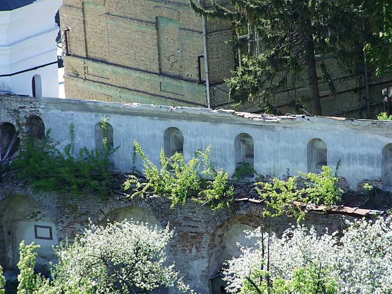 2015 р. Фрагмент південного муру на захід від Південної башти (ліворуч)Розмір зображення: 800:600 піксел Вигляд з півночі, з 4-го ярусу великої дзвіниці. Фото М. І. Жарких, 4 травня 2015 р. |