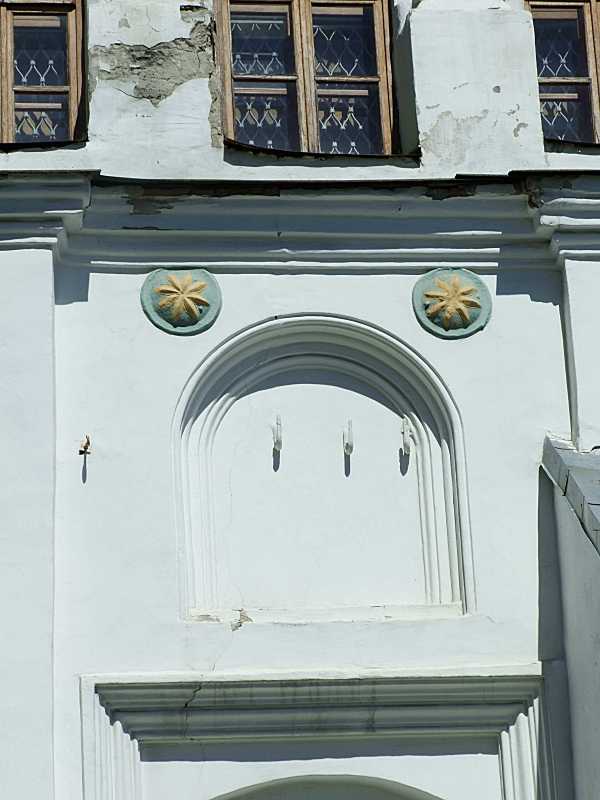 Ніша на 1-у поверсі південного фасаду друкарніРозмір зображення: 600:800 піксел Фото М. І. Жарких, 4 травня 2015 р. |
