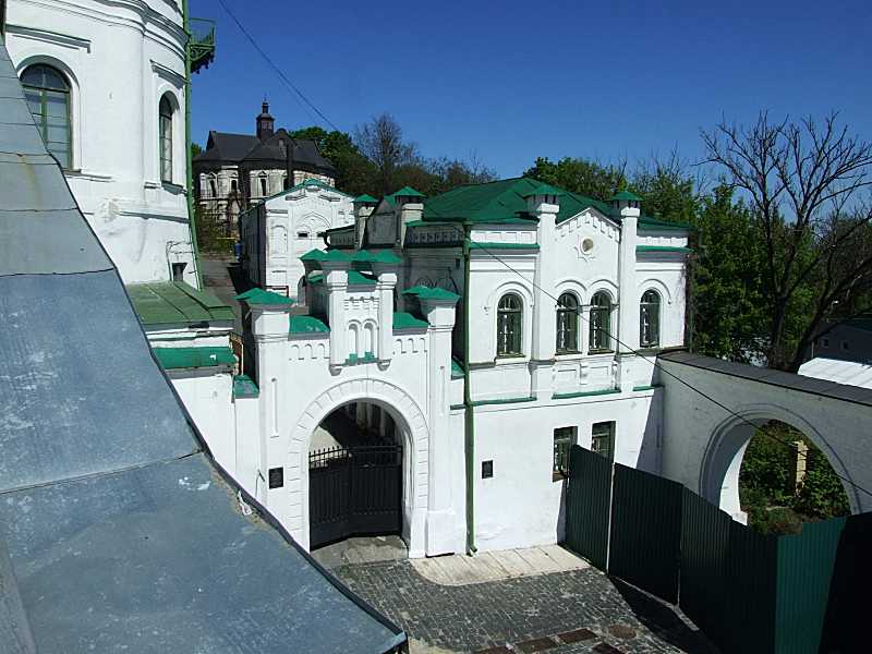 2015 р. Загальний вигляд з південного заходуРозмір зображення: 800:600 піксел Ліворуч – брама друкарні (№ 10а), праворуч – східна брама. Фото М. І. Жарких, 4 травня 2015 р. |
