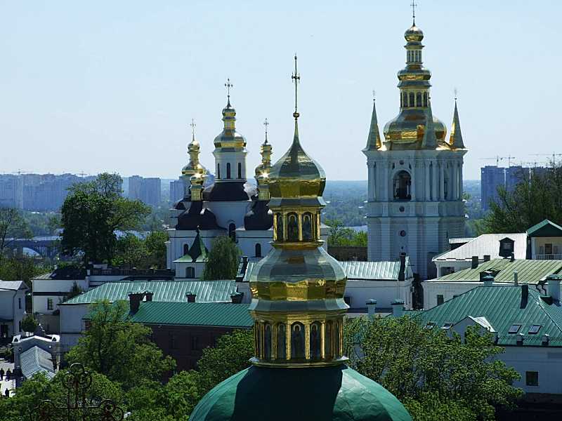 Верх дзвіниці Ближніх печер на тлі Дальніх печер