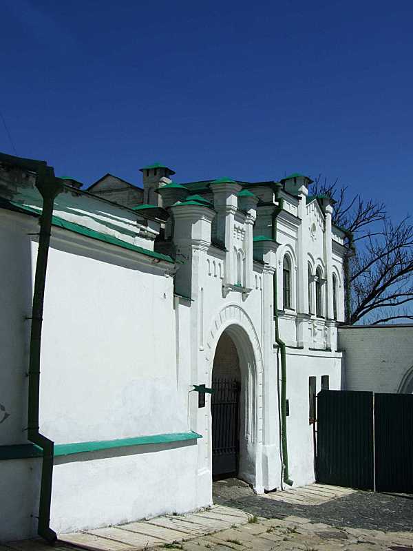2015 р. Брама друкарні і словолитня в ракурсіРозмір зображення: 600:800 піксел Вигляд із заходу. Фото М. І. Жарких, 4 травня 2015 р. |