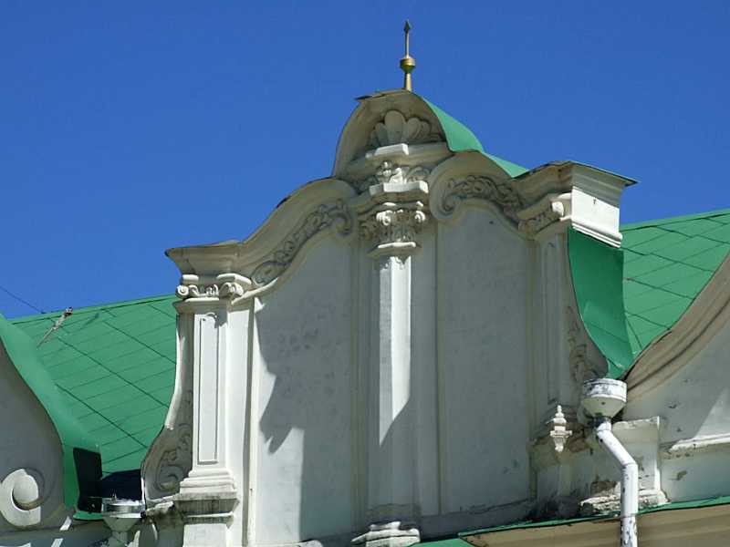 2015 р. Фронтон 4 Розмір зображення: 800:600 піксел Фото М. І. Жарких, 4 травня 2015 р. Вкладені елементи Фронтон 4. Вигляд із заходу Ліва пілястра Колонка та капітель