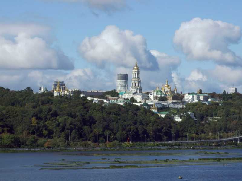 На тлі Дальніх печер вивищується бізнес-центр «Сенатор» (вул. Московська 32 / Різницька, 2).