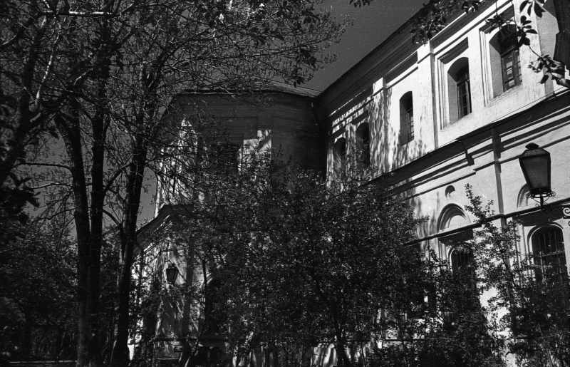 1986 р. Південний фасад. Вигляд з південного сходуРозмір зображення: 800:515 піксел 1986 р. 2 травня. Фото М.І.Жарких. Негатека, № 302-06. |