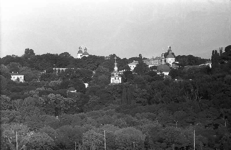 1987 р. Ближні печери. Вигляд зі сходуРозмір зображення: 800:518 піксел 1987 р. 2 липня. Фото М.І.Жарких. Негатека, № 345-21. |