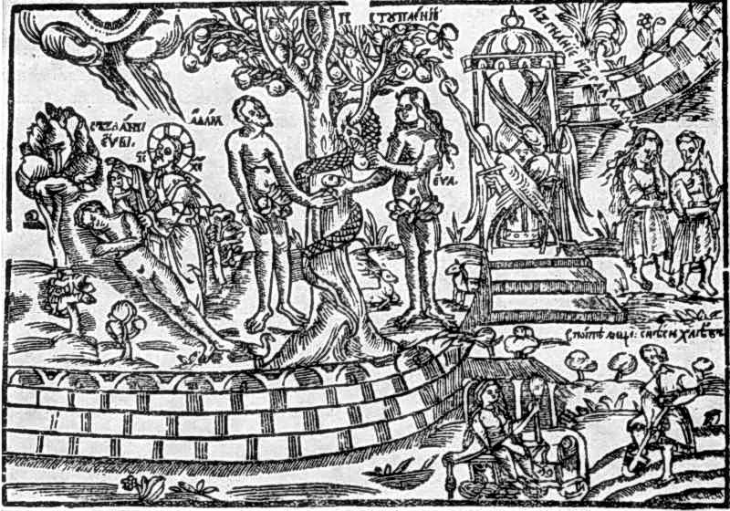 «Гравер «Т. Т.». Гріхопадіння прародителів. З «Євангелія учительного». 1637 р. (Київ).