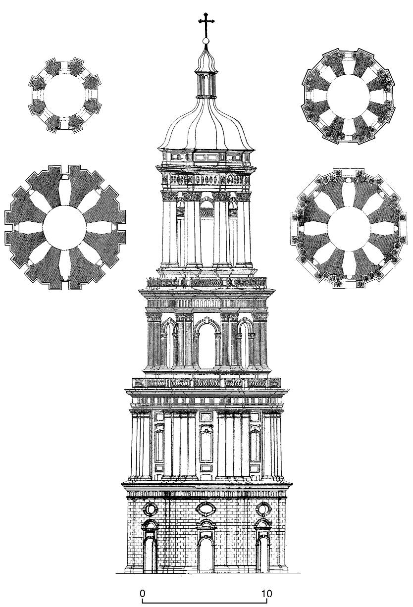 Фасад. Поярусні планиРозмір зображення: 834:1226 піксел Креслення 20 ст. Джерело: Звід пам’яток історії і культури України. – К.: 2011 р., т. 3 (Київ), № 489-45. |