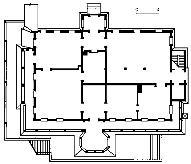 План першого поверхуРозмір зображення: 620:532 піксел Джерело: Звід пам’яток історії і культури України. – К.: 2011 р., т. 3 (Київ), № 489-216. |
