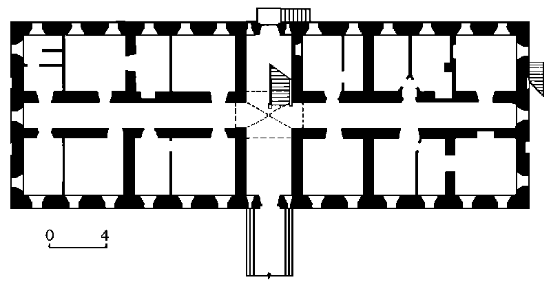 План першого поверхуРозмір зображення: 800:410 піксел Джерело: Звід пам’яток історії і культури України. – К.: 2011 р., т. 3 (Київ), № 489-306. |