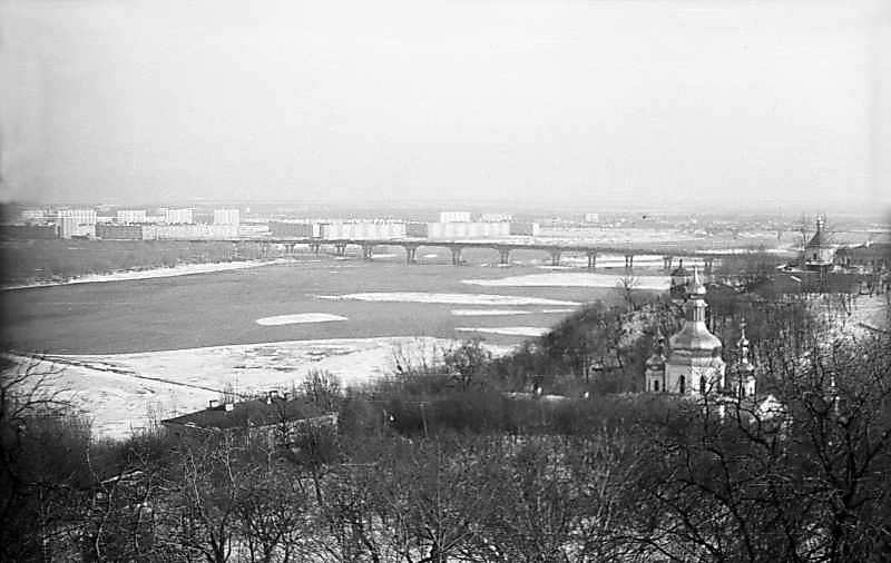 1976 р. Вид на Дніпро і Ближні печери. Вигляд з півночіРозмір зображення: 800:506 піксел 1976 р. 13 березня. Фото М.І.Жарких. Негатека, № A083-25. |