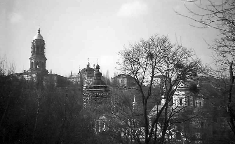 1977 р. Верхня лавра і Ближні печери. Вигляд з півдняРозмір зображення: 800:493 піксел 1977 р. 4 березня. Фото М.І.Жарких. Негатека, № A234-17. |