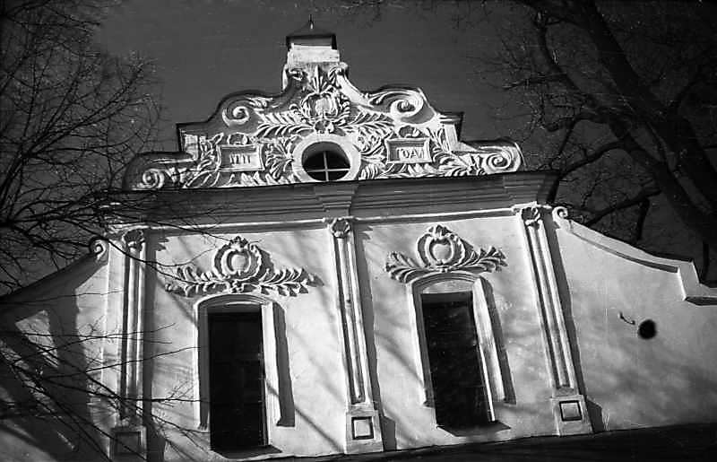 1977 р. Східний фронтон. Вигляд зі сходуРозмір зображення: 800:515 піксел 1977 р. 9 квітня. Фото М.І.Жарких. Негатека, № A247-37. |