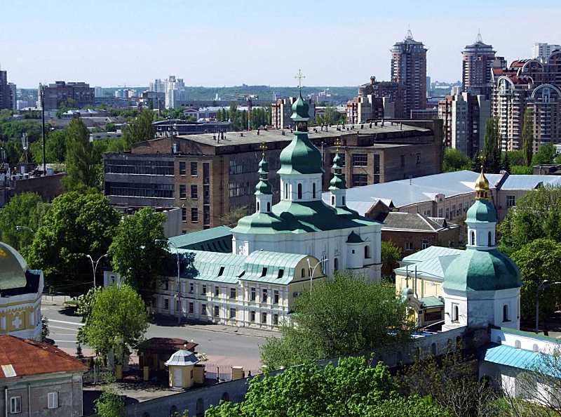 Загальний вигляд з північного сходуРозмір зображення: 800:594 піксел Вид з 4-го ярусу великої дзвіниці Лаври. Фото М. І. Жарких, 4 травня 2015 р. |