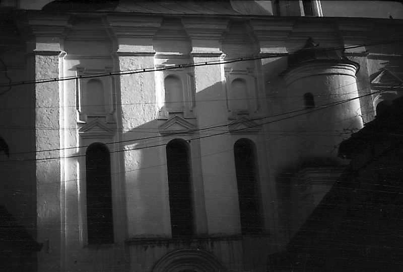 1977 р. Фрагмент північного фасаду. Вигляд з півночіРозмір зображення: 800:541 піксел 1977 р. 7 травня. Фото М.І.Жарких. Негатека, № A257-12. |