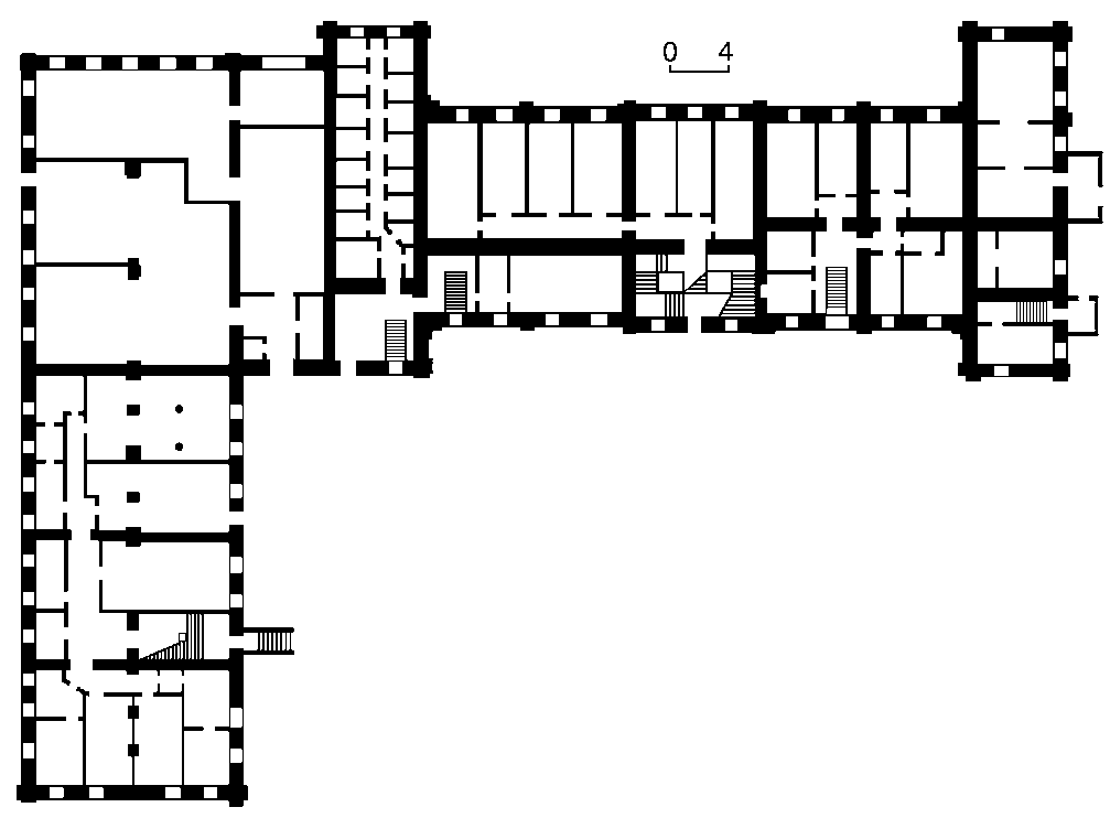 План першого поверхуРозмір зображення: 1007:742 піксел Джерело: Звід пам’яток історії і культури України. – К.: 2011 р., т. 3 (Київ), № 496-22. |