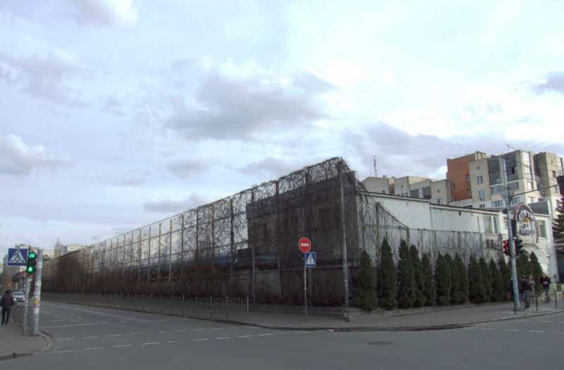 2021 р. Загальний вигляд з півночіРозмір зображення: 800:525 піксел Ліворуч – вул. Межигірська, праворуч – вул. Оленівська. Фото М. І. Жарких, 3 квітня 2021 р. |