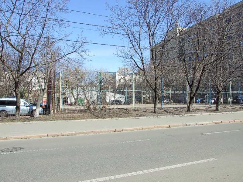 Майданчик розташований на парному боці вул. Межирігської між житловими будинками по вул. Щекавицькій, 21 (праворуч) та Введенській, 26 (за лівий краєм кадру), окремого номера не має.