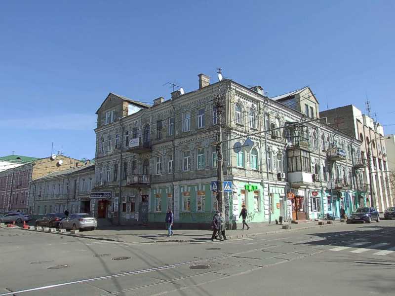 2021 р. Загальний вигляд із заходуРозмір зображення: 800:600 піксел Ліворуч – вул. Хорева, праворуч – вул. Межигірська. Фото М. І. Жарких, 26 березня 2021 р. |