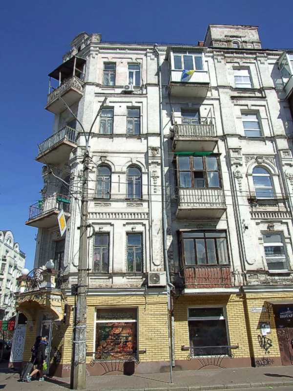 2021 р. Ліва частина фасаду по вул. МежигірськійРозмір зображення: 600:800 піксел Фото М. І. Жарких, 26 березня 2021 р. |