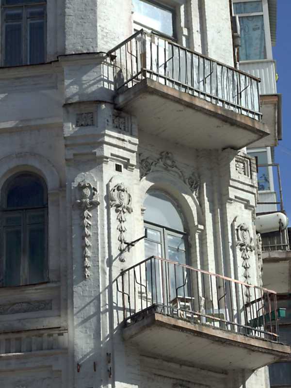 Наріжний балкон 3-го поверху Розмір зображення: 600:800 піксел Фото М. І. Жарких, 3 квітня 2021 р. Вище | Наступна сторінка