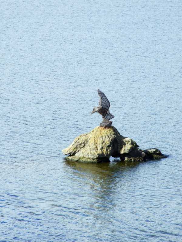 Камінь стирчить із водиРозмір зображення: 600:800 піксел Фото М. І. Жарких, 27 вересня 2021 р. Посередині Дніпра. Що би то могло бути? |