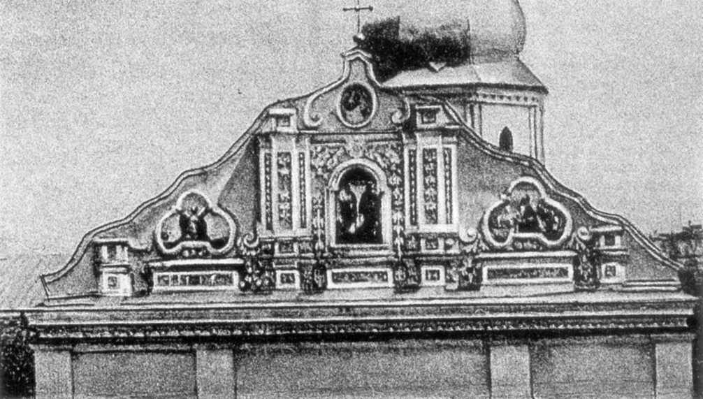 ФронтонРозмір зображення: 1006:571 піксел Церква св.Петра і Павла, зруйнована у 1930-і рр. Фронтон. Джерело: Звід пам’яток історії і культури України. – К.: 1999 р., т. 1 (Київ), с. 123. |