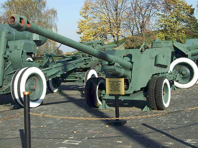 100-мм польова гармата БС-3 зразка 1944 р.Розмір зображення: 800:600 піксел 100-мм польова гармата БС-3 зразка 1944 р. Максимальна дальність стрільби 20 000 м Маса снаряда 15,6 кг Скорострільність 5-7 пострілів/хв. Маса гармати 3 650 кг |