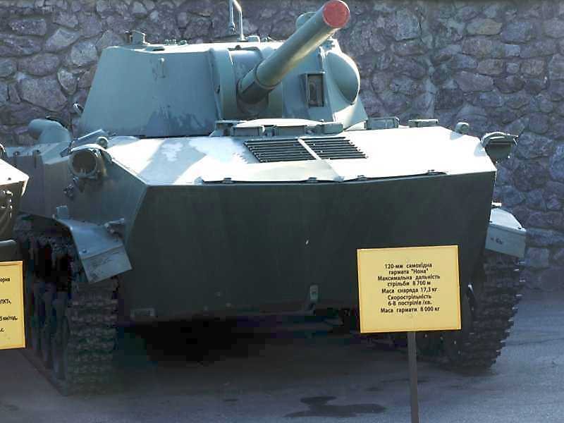 120-мм самохідна гармата “Нона”Розмір зображення: 800:600 піксел 120-мм самохідна гармата “Нона” Максимальна дальність стрільби 8 700 м Маса снаряда 17,3 кг Скорострільність 6-8 пострілів/хв. Маса гармати 8 000 кг |