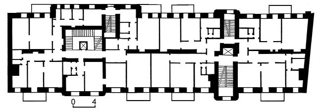 [2003 р.] План другого поверху (№ 8б)Розмір зображення: 642:224 піксел Джерело: Звід пам’яток історії і культури України. – К.: 2003 р., т. 2 (Київ), № 485c. |