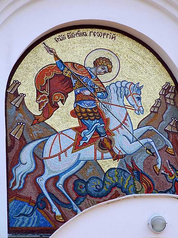 Мозаїча “Чудо св.Георгія о змії” Розмір зображення: 600:800 піксел 4 квітня 2009 р. Фото М.І.Жарких. Вкладені елементи Постать святого (+)