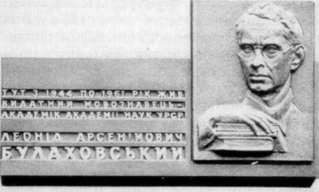 Меморіальна дошка Л.А.БулаховськомуРозмір зображення: 658:396 піксел Джерело: Звід пам’яток історії і культури України. – К.: 1999 р., т. 1 (Київ), с. 500. |