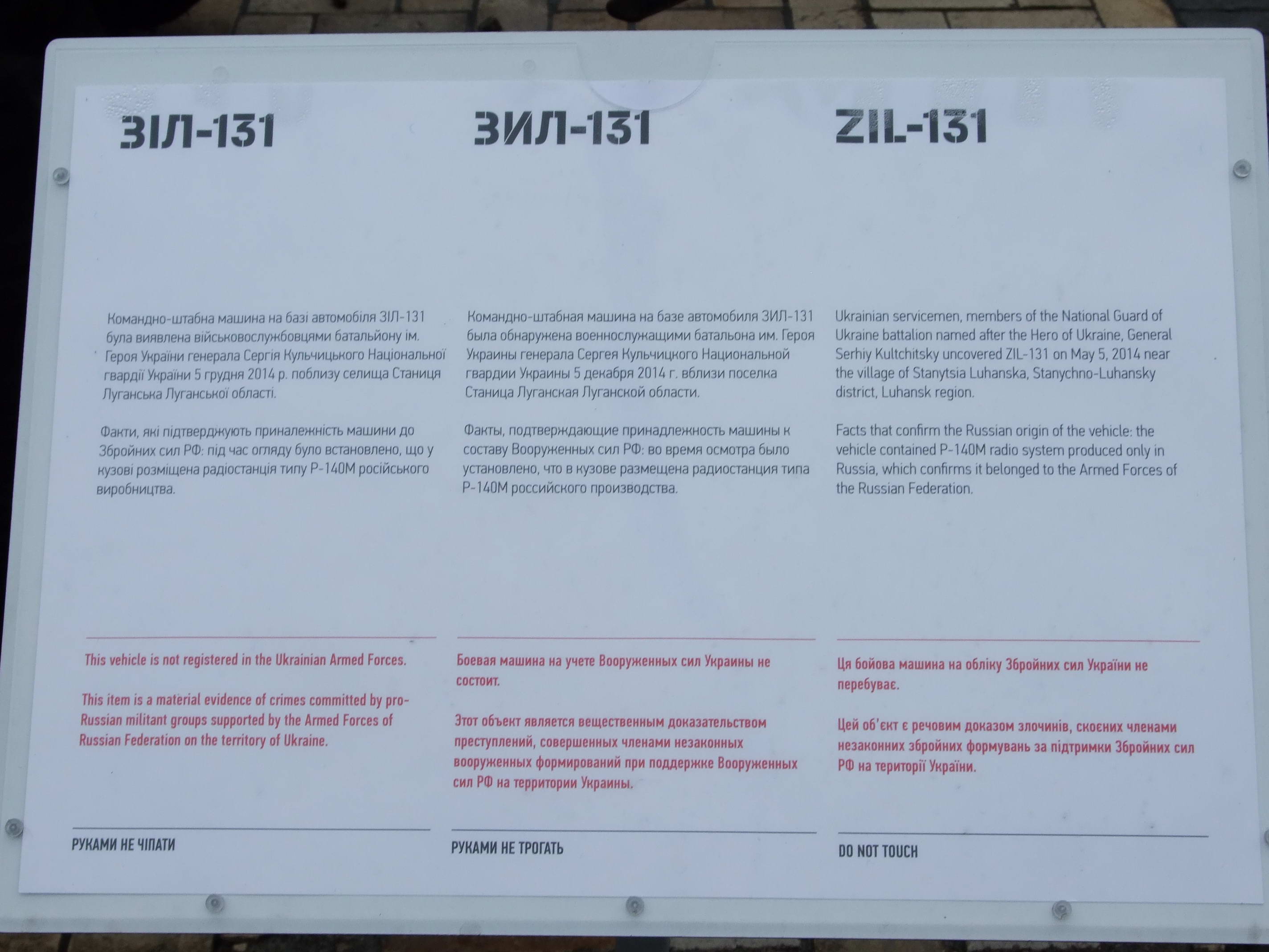 Командно-штабна машина з радіостанцією захоплена вояками батальйону ім. Кульчицького 4 грудня 2014 р. біля Станиці-Луганської. Фото М. І. Жарких, 26 лютого 2015 р.