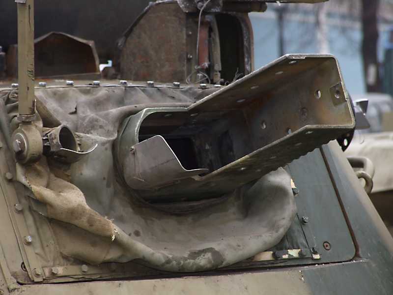 БМД-2 озброєна 30-мм довгоствольною гарматою (цілий екземпляр можна побачити ). Але псковська п’янь, приїзавши в Україну, мабуть, вирішила, що гармата тільки обтяжує – і продала луганській срані на самогонний апарат. Зрештою, це моє особисте припущення… Фото М. І. Жарких, 26 лютого 2015 р.