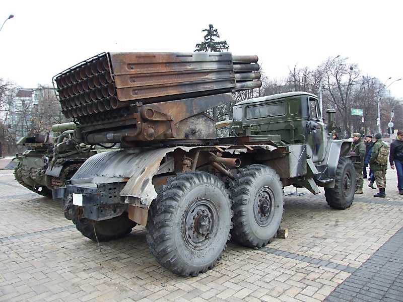 Вигляд ззаду у 3/4 Розмір зображення: 800:600 піксел Фото М. І. Жарких, 26 лютого 2015 р. Вкладені елементи Блок пускових труб добряче обгорів... І від крила над колесом тільки кусочок лишився