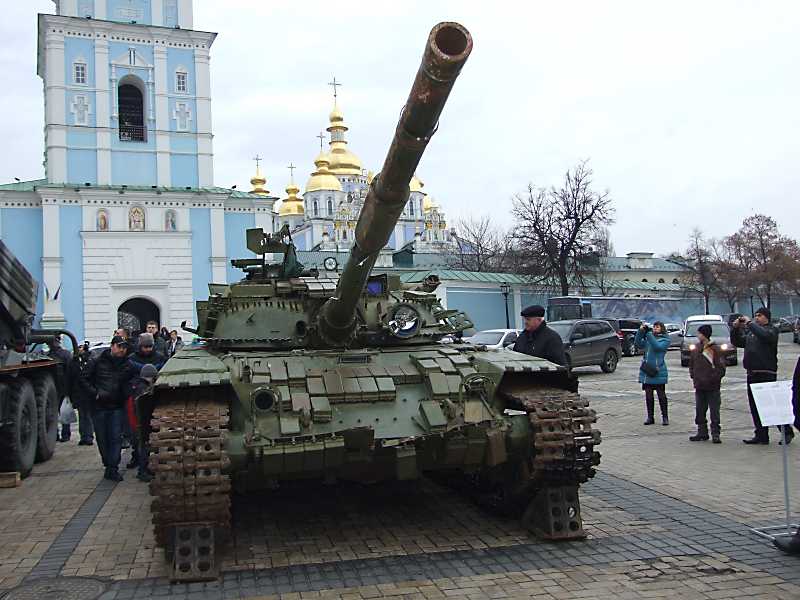 Вигляд анфас на тлі Михайлівського монастиряРозмір зображення: 800:600 піксел Фото М. І. Жарких, 26 лютого 2015 р. |