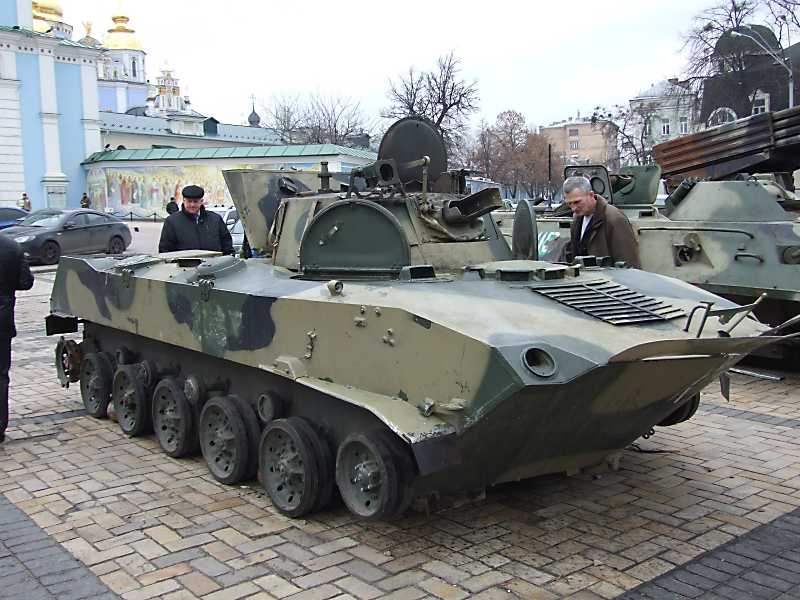 БМД-2 Розмір зображення: 800:600 піксел Бойова машина десанту – 2. Фото М. І. Жарких, 26 лютого 2015 р. Вкладені елементи Коліщата є, але гусениць не вистачає... Тут мала б бути гармата... Вигляд анфас на тлі Михайлівської дзвіниці Ще вигляд анфас... Вигляд у 3-4 Вигляд ззаду Пояснення