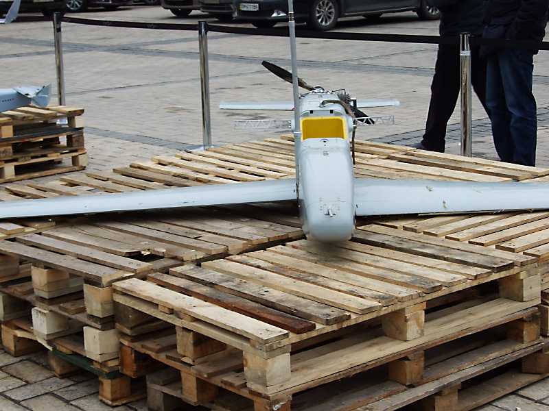 Безпілотний літальний апарат «Гранат-4» Розмір зображення: 800:600 піксел Фото М. І. Жарких, 26 лютого 2015 р. Вкладені елементи На тлі Міністерства закордонних справ Вигляд у 3/4 Вигляд у 3/4 ззаду Видно двигун і ще щось цікаве... Пояснення