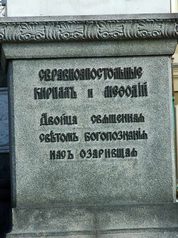 Напис св.Кирилу і Мефодію Розмір зображення: 600:800 піксел 31 липня 2008 р. Фото М.І.Жарких. Попередня сторінка | Вище | Наступна сторінка