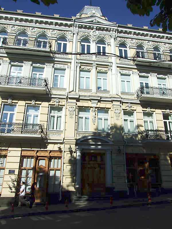 2008 р. Центральна частина головного фасаду Розмір зображення: 600:800 піксел 30 липня 2008 р. Фото М.І.Жарких. Вкладені елементи Головний вхід Вікна 2-го поверху (+) Вікна 3-го поверху Фрагмент 4-го поверху (+)