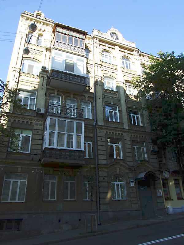 Житловий будинок (№ 19) Розмір зображення: 600:800 піксел Вкладені елементи 2003 р. Звід пам’яток Києва (+) 2008 р. Загальний вигляд 2008 р. Головний фасад (+)