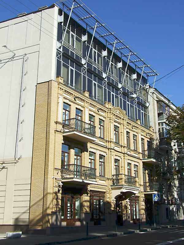 Будинок (№ 7) Розмір зображення: 600:800 піксел 30 липня 2008 р. Фото М.І.Жарких. Вкладені елементи 2003 р. Звід пам’яток Києва (+)