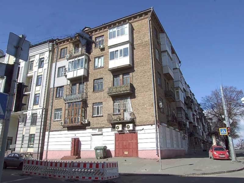 Житловий будинок (№ 33)Розмір зображення: 800:600 піксел Вигляд зі сходу. Ліворуч – вул. Спаська, праворуч – вул. Набержно-Хрещатицька. Фото М. І. Жарких, 23 березня 2021 р. |