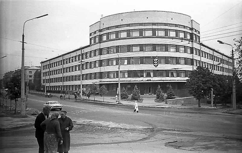 Інститут кібернетики (№ 41)Розмір зображення: 800:507 піксел Загальний вигляд (зліва – просп.Науки, справа – Лисогірська вул.). 1975 р. 9 жовтня. Фото М.І.Жарких. Негатека, № A069-09. |