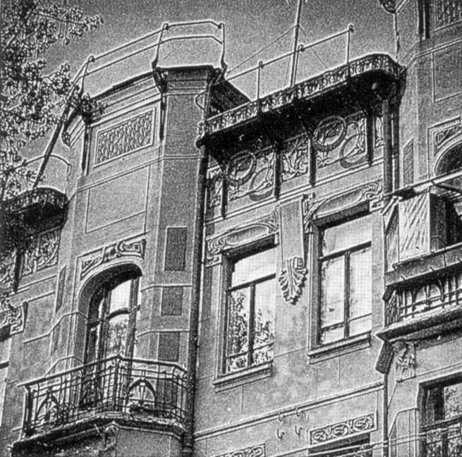 Фрагмент фасадуРозмір зображення: 655:648 піксел Джерело: Звід пам’яток історії і культури України. – К.: 1999 р., т. 1 (Київ), с. 239. |