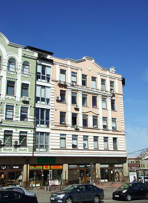 Бізнес-центр (№ 15в)Розмір зображення: 585:800 піксел Фото М. І. Жарких, 16 березня 2020 р. Всі три корпуси бізнес-центра мають адресу Нижній Вал, 15. Їх завершено в 2014 р. |