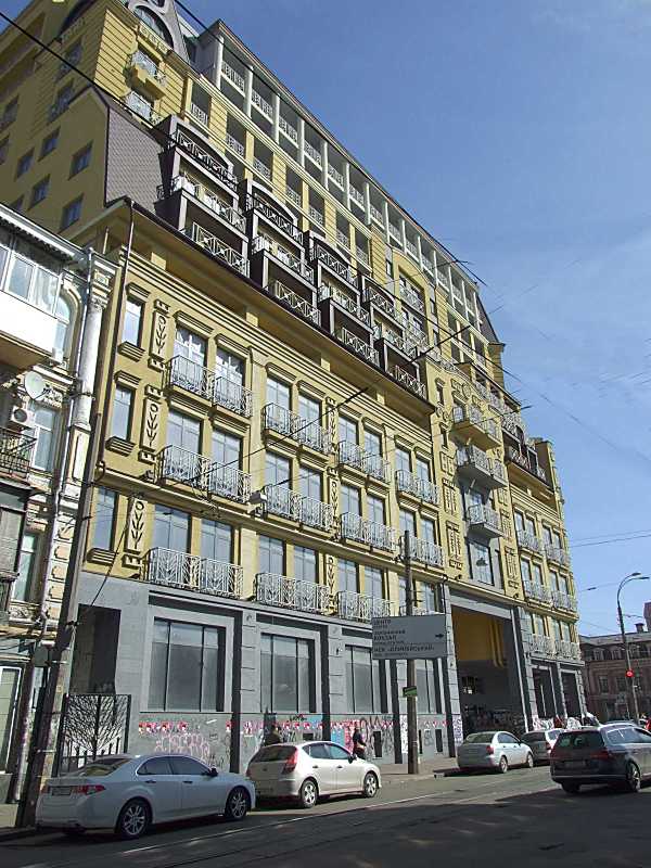 2020 р. Загальний вигляд з боку вул. КостянтинівськоїРозмір зображення: 600:800 піксел Вигляд із заходу. Фото М. І. Жарких, 16 березня 2020 р. |