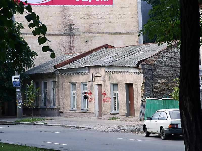 Будинок (№ 63)Розмір зображення: 800:600 піксел 9 вересня 2007 р. Фото М.І.Жарких. На тлі брандмауера будинку по Нижньому Валу, 61. Цей одноповерховий будинок знасено перед 2015 роком. |